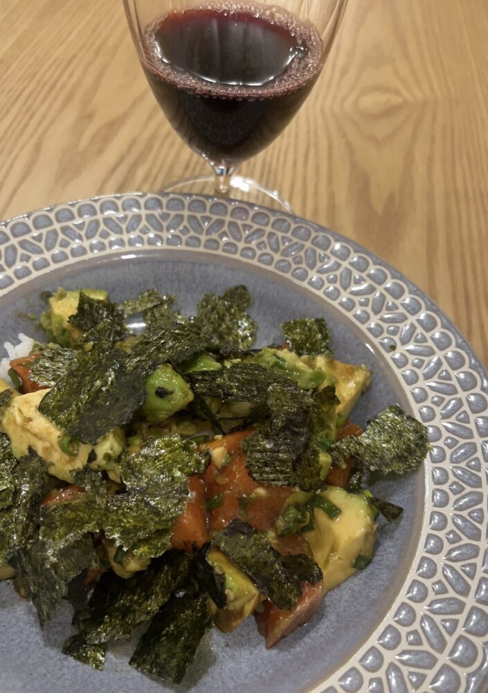 ポキ 執筆者 西嶋 華園 | 2026年1月 26日 | お料理 ポキ丼とやら。 アボカドが悪くならないうちに食べましょう…。 ポキ丼に辿り着きました。 0.25合のご飯 アボカド サーモン 調味料色々 海苔(大き) なかなかいけました。 ノンアルコールのワインを少々。 毎日現代書関西代表作家展のレセプションで、当たり外れがあるけれど最近美味しいノンアルコールワインに出逢った話をお聞きしました。 ノンアルだから飲んでも運転できるが、なんか嬉しく。 ノンアル^_^いけます。 Line Email Facebook Twitter Printシェア 関連記事 コブサラダ 戀華(れんげ)書展〜情熱〜 行きました 藍 チキンライス