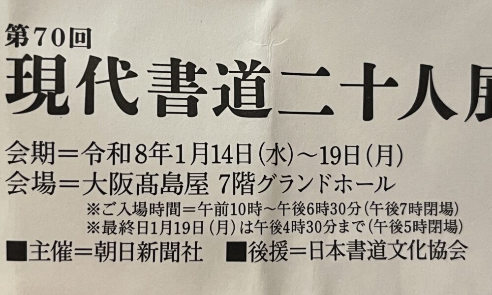 大阪に私用で出掛ける事があり、そこへ第70回現代書道二十人展の入場券を頂戴しましたので行かせていただきました。